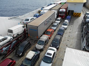 ..auf der Fähre nach Igoumenitsa. Das linke Auto ist NEMO.